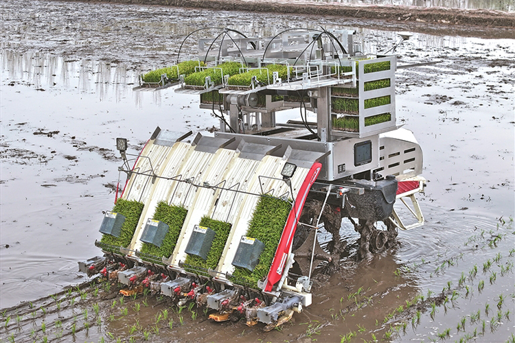 農(nóng)機(jī)+農(nóng)技 普陽農(nóng)場插好秧