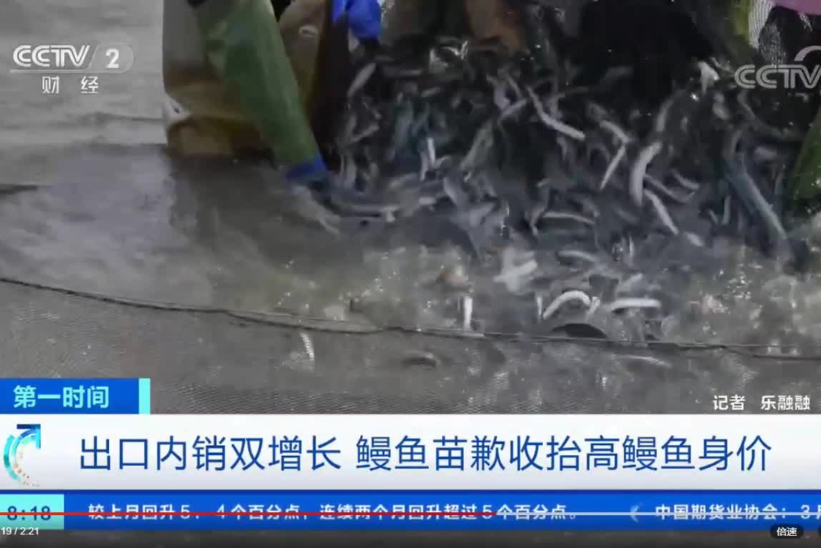 出口內(nèi)銷雙增長 鰻魚苗歉收抬高鰻魚身價