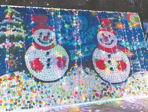 8760個小瓶蓋拼成亞冬會祝福畫卷
