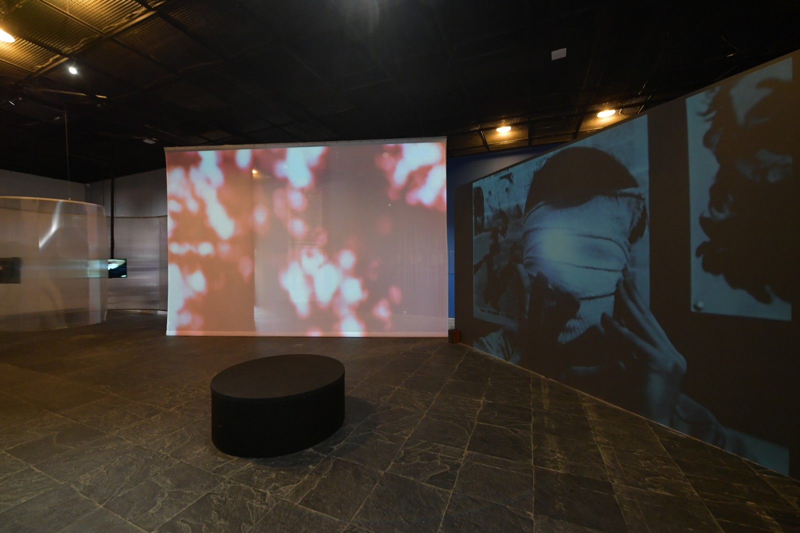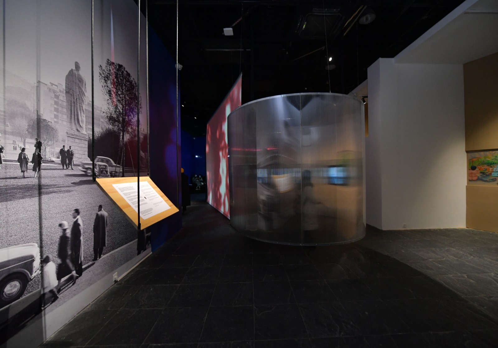 空間與空間的交疊、空間中的空間以作品圖像、檔案重建與場(chǎng)景搭建等形式,散落于展覽的各個(gè)角落之中。陳淑瑜在開幕式的視頻致辭中提到:“展覽是關(guān)于藝術(shù)作品看不見的本質(zhì),是我們用藝術(shù)作品可見的實(shí)體部分去建構(gòu)展覽的空間,去容納內(nèi)心不可見的部分。對(duì)我來(lái)說(shuō),這是展覽的意義,也是展覽的開始?!盵8]