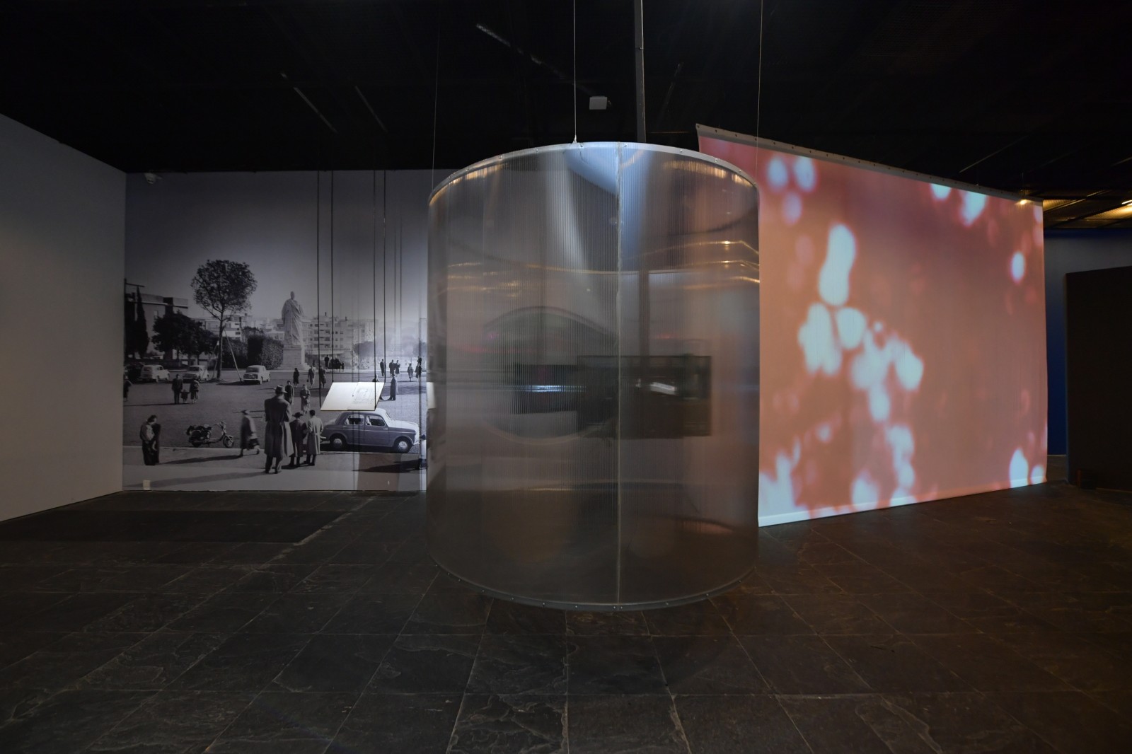 臺(tái)階的最上方引導(dǎo)著觀眾走向迷宮的“出口”——那是一個(gè)陽(yáng)臺(tái),它被認(rèn)為跨越了私人領(lǐng)域和公共領(lǐng)域之間的那條不甚明晰的界限。人們?cè)诘巧详?yáng)臺(tái)的那一瞬間,目之所及的是胡偉呈現(xiàn)的“廣場(chǎng)”。在《為公共口口(邂逅),提案》中,胡偉對(duì)自己家鄉(xiāng)的廣場(chǎng)進(jìn)行了調(diào)研,廣場(chǎng)中心紀(jì)念碑雕塑的拆除背后是對(duì)一段宏觀歷史的回顧,展柜中陳列的文獻(xiàn)材料,3D打印復(fù)原的紀(jì)念碑與噴泉,都以一種最傳統(tǒng)的方式印證著這段歷史的發(fā)生與存在。而在面向陽(yáng)臺(tái)的視頻圖像語(yǔ)境中,胡偉通過(guò)鏡頭的聚焦切換與角度變化,在宏觀的歷史背景外,其似乎在試圖提煉除一種模糊的普遍性,其適用于廣泛的公共空間與集體記憶,卻與人們的個(gè)體記憶都有不謀而合之處,但又難以捕捉,“沒有面目,也無(wú)人認(rèn)領(lǐng)”。