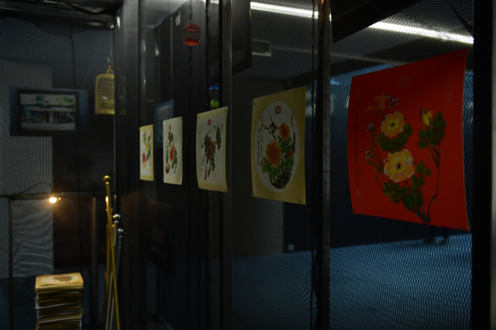 有趣的是,在陳淑瑜與未建筑設(shè)計(jì)研究所共同設(shè)計(jì)的“迷宮”裝置中,陳淑瑜以策展的方式又介入了耶丁的這段創(chuàng)作經(jīng)歷中。進(jìn)入暗室中的迷宮,觀眾沿著旋轉(zhuǎn)的樓梯向上前行,一路遇到的老照片,帶有時(shí)代氣息的畫作,被置于凹陷空間深處的視頻,以及需要置身于“洞穴”中去傾聽的獨(dú)白,都昭示著一種極強(qiáng)的私密性,在不見光亮的迷宮中,人們?cè)讵M窄而形態(tài)怪誕的通道中甚至無(wú)法錯(cuò)開身來(lái),被迫與他人“分享”私密。