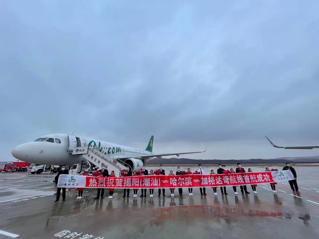 3月29日17時15分,在陣陣的引擎轟鳴聲中,由廣東揭陽(潮汕)飛往加格達(dá)奇的首個航班準(zhǔn)時平穩(wěn)地降落在加格達(dá)奇嘎仙機場,標(biāo)志著加格達(dá)奇—哈爾濱—揭陽(潮汕)航線首航成功。30日,春秋航空還將首航加格達(dá)奇—哈爾濱—上海航線。