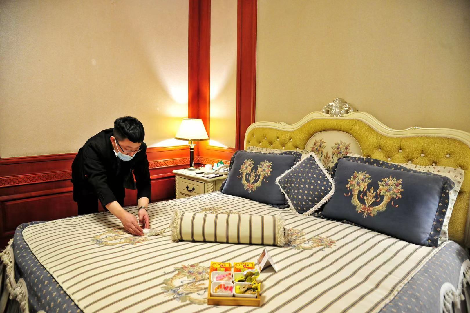 邱冬梅說,為了保證賓客住得安心放心,賓館在疫情防控和安保方面提前做了很多針對性的工作。進(jìn)入4月初就組織全體員工開展業(yè)務(wù)知識及專業(yè)技能、酒店禮儀、員工儀容儀表等崗位技能培訓(xùn)。