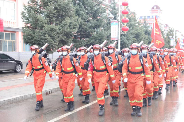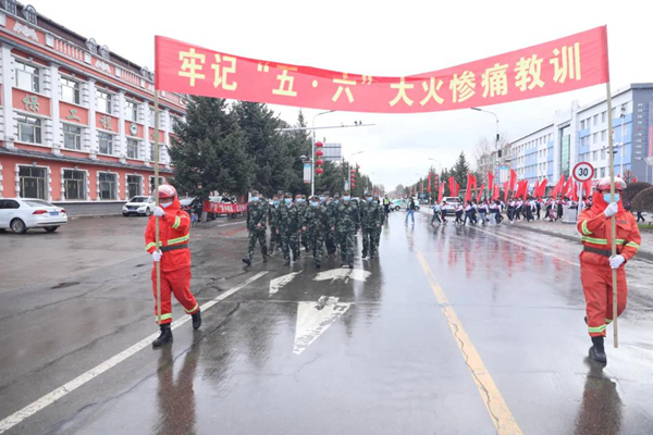 隨后防火警笛鳴起,由消防車、防火運(yùn)兵車、后勤保障車30余輛機(jī)動(dòng)車組成的車隊(duì)和千余名職工群眾組成的游行隊(duì)伍在鎮(zhèn)內(nèi)主要街道繞行一周,營造了濃厚的防火宣傳氛圍。