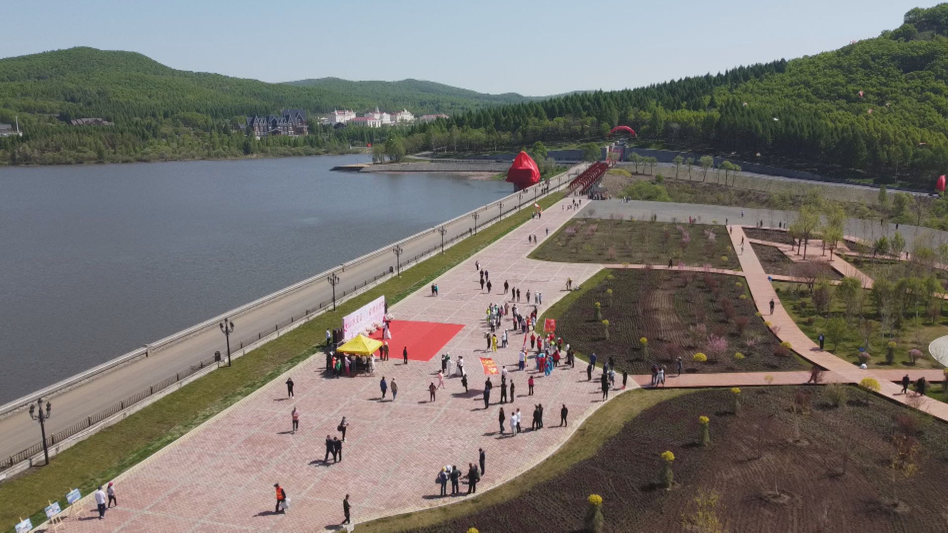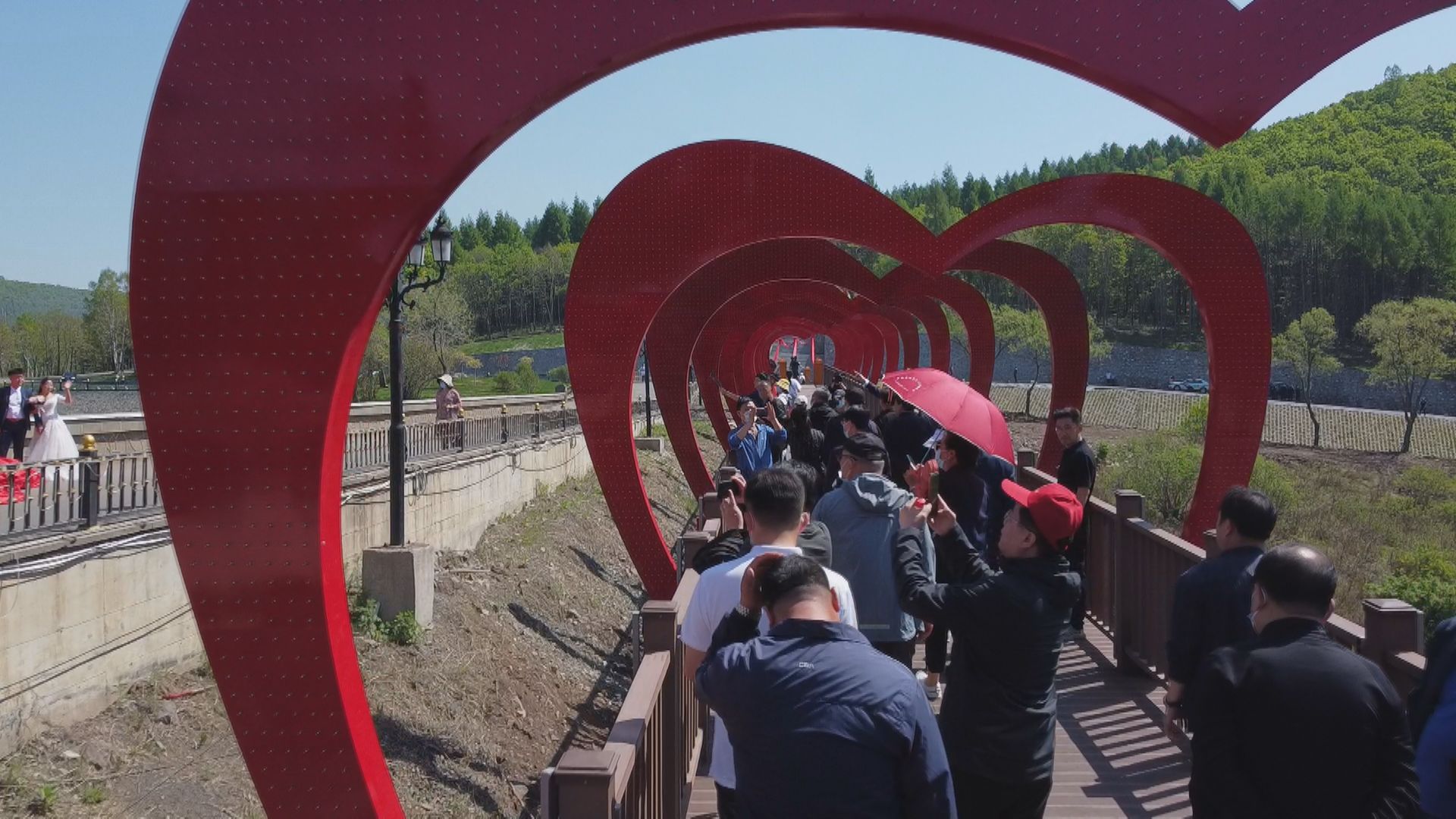 5月的邊城,清風(fēng)拂面,陽光明媚。位于天長山與地久山間的愛情谷公園湖水清澈,美景如畫。這里東經(jīng)131度,北緯44度,海拔520米,加在一起正是“一生一世我愛你”的諧音,這也是公園名字的由來。