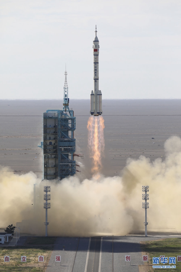 2021年6月17日9時(shí)22分,搭載神舟十二號載人飛船的長征二號F遙十二運(yùn)載火箭,在酒泉衛(wèi)星發(fā)射中心準(zhǔn)時(shí)點(diǎn)火發(fā)射,約573秒后,神舟十二號載人飛船與火箭成功分離,進(jìn)入預(yù)定軌道,順利將聶海勝、劉伯明、湯洪波3名航天員送入太空,飛行乘組狀態(tài)良好,發(fā)射取得圓滿成功。新華社記者 琚振華 攝