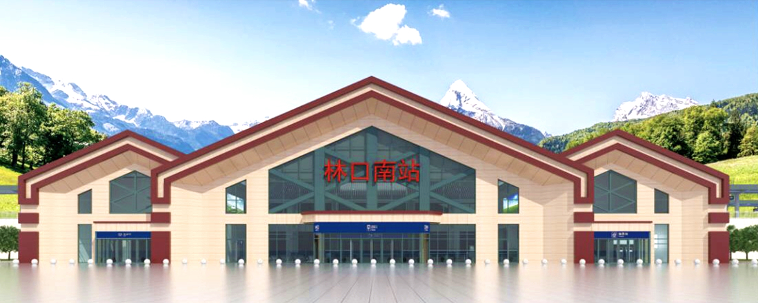 林口南站建筑面積2998.19平方米,可容納800旅客候車。設(shè)2條正線,2條到發(fā)線,站房外觀設(shè)計如同“林中木屋”,融入林口縣特有的“山水神秀”文化底蘊,給人以厚重堅實之感,并將英雄之城的紅色文化融入其中,象征城市精神如山巒屹立。兩側(cè)較小體塊烘托中部門式造型,窗格構(gòu)件相互交織,如森林霧凇,體現(xiàn)寒冷地區(qū)建筑特質(zhì),具有雪原建筑意向。車站穩(wěn)重大氣、簡潔壯麗,通過現(xiàn)代建筑語言詮釋了站房的人文之靈,彰顯現(xiàn)代交通建筑特征。