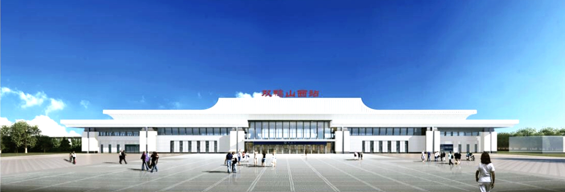 雙鴨山西站建筑面積9997.9平方米,設(shè)2條正線,3條到發(fā)線。以“農(nóng)林盛地,昂揚煤城,融匯文脈,合于自然”為設(shè)計理念。建筑形體通過極強的橫向?qū)哟?,呈現(xiàn)向中心聚集的趨勢,中心高兩側(cè)低類似于山脈的建筑天際線與橫向線條結(jié)合給人以綿延不絕的感覺,寓意城市文化及歷史如山如水般源遠流長。建筑整體造型著重體現(xiàn)雙鴨山市的煤城特色和豐富的農(nóng)林資源,其煤炭相關(guān)產(chǎn)業(yè)一直作為城市建設(shè)發(fā)展的重要支柱,建筑主立面采用四根厚重有力的支撐柱,以表現(xiàn)這一理念,同時深入挖掘并體現(xiàn)雙鴨山市特有的文脈及自然特色。