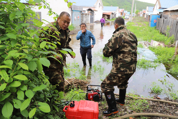阿木爾林業(yè)局森林消防隊員在人民街排內(nèi)澇