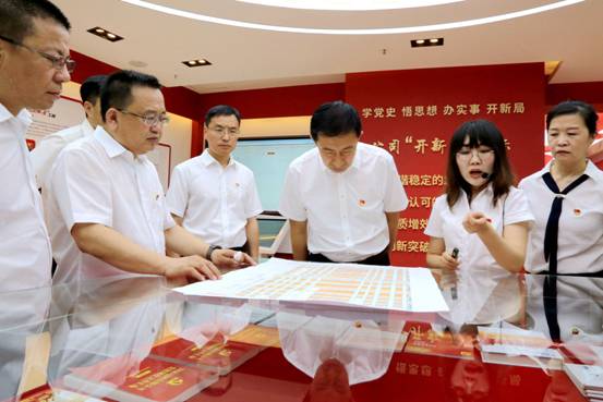 在地區(qū)黨史學(xué)習(xí)教育展館,面對(duì)鮮紅的黨旗,由區(qū)委書記王顯志領(lǐng)誓,區(qū)委理論學(xué)習(xí)中心組成員集體宣誓,重溫入黨誓詞,砥礪前進(jìn)初心,勇?lián)氊?zé)使命。