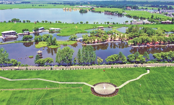 隱藏在綠水田中的大慶市林甸縣四合鄉(xiāng)聯(lián)合村,是一幅移步換景的畫(huà)卷,廣闊無(wú)垠的草原,鮮花、野草點(diǎn)綴其間,繪就出這里獨(dú)具個(gè)性魅力的濕地原生態(tài)景觀。采摘、騎車、釣魚(yú),或閉上眼睛靜聽(tīng)四周的鳥(niǎo)鳴聲、田邊的流水聲以及青禾的搖曳聲,放松又解壓。