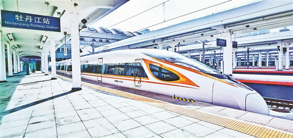 復(fù)興號高寒動車組首次??吭谀档そ?。黑龍江日報全媒體記者 邵國良攝