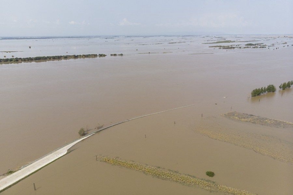 8月17日,黑龍江省同江市三江口附近江面處在超警戒水位。新華社記者 張濤 攝