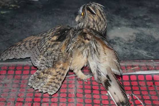 黑龍江經(jīng)濟網(wǎng)訊(韓強 崔紅霞 記者馬朝林)近日,大興安嶺林業(yè)集團公司新林林業(yè)局大烏蘇林場致電林業(yè)局森林資源管理科,稱在林場職工自家庭院中發(fā)現(xiàn)了一只受傷的像貓頭鷹的大鳥。接到電話后,林業(yè)局資源管理科野生動物救助管理人員迅速趕到大烏蘇林場,通過進一步觀察,這只大鳥靜臥在庭院中,其右側(cè)翅膀有明顯傷痕且體質(zhì)較弱,導致無法自由飛翔,初步判斷應該是飛行過程中撞擊所致。