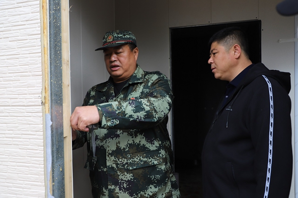 阿木爾林業(yè)局黨委書記胡守慶(左)測(cè)量在興安林場(chǎng)新建精品民宿窗口尺
