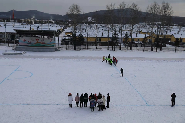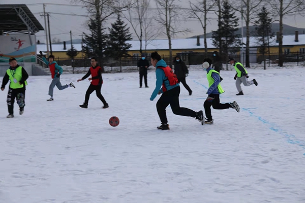 組織開展雪地足球比賽。作為學(xué)校的傳統(tǒng)特色項(xiàng)目,雪地足球的比賽成為全校的焦點(diǎn)。精心繪制的雪地足球場(chǎng),為同學(xué)們提供了獨(dú)具興安特色的足球樂園。
