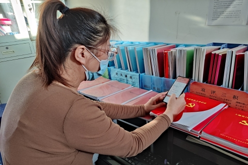 職工在礦自辦“霍拉盆先鋒 智慧黨建平臺”進(jìn)行黨的十九屆六中全會(huì)精神知識測試(李云田 攝)