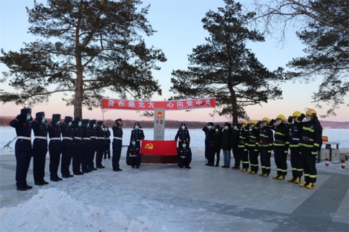 呼瑪縣素有紅色邊疆的美譽(yù),共建聯(lián)盟前往呼瑪縣江邊第173號界碑,在莊嚴(yán)的黨旗和界碑下,呼瑪縣森林消防大隊黨委書記苗亮亮帶領(lǐng)全體黨員同志重溫了入黨誓詞,舉行集體宣誓儀式,旨在進(jìn)一步強(qiáng)化廣大應(yīng)急人的政治意識,增強(qiáng)黨性觀念,筑牢政治忠誠,永葆紅色氣質(zhì)。