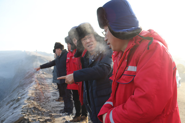 圖為古蓮河露天煤礦黨委書記帶領(lǐng)相關(guān)人員深入剝采一線檢查安全生產(chǎn)工作