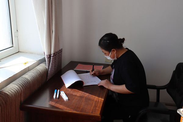 圖為古蓮河露天煤礦疫情防控人員對(duì)來往客人進(jìn)行登記