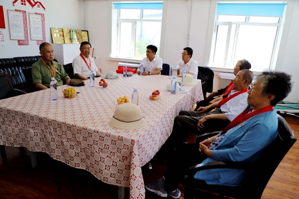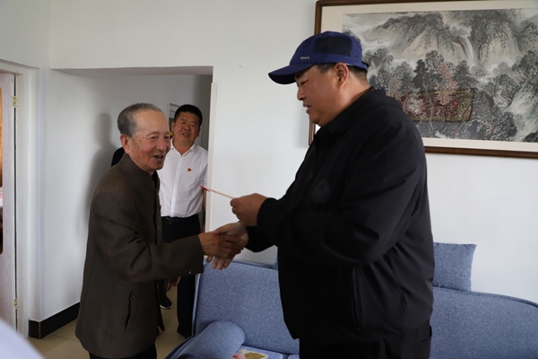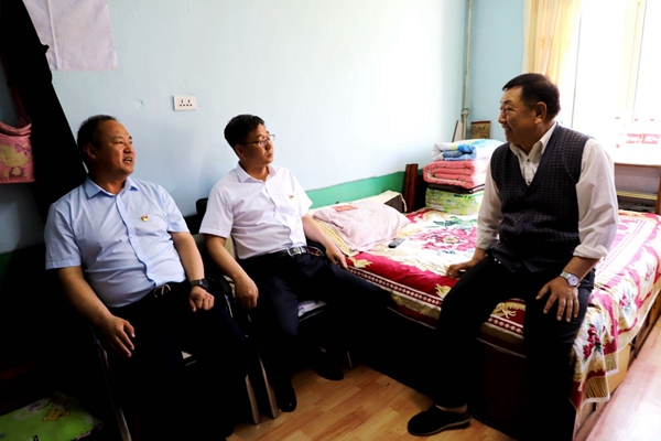 阿木爾林業(yè)局黨委副書(shū)記、局長(zhǎng)韓鳳泉(中)“七一”走訪慰問(wèn)退休老干部尹遜言(王力 攝)