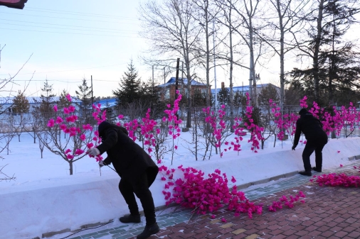 林場(chǎng)以“齊抓共管美環(huán)境、高高興興過大年”為定位,組織職工對(duì)辦公區(qū)域進(jìn)行了全方位大掃除,不放過清潔區(qū)的任何一個(gè)衛(wèi)生死角。通過換旗幟、砌雪墻、掛彩燈、制作了手工插花等多種形式,開展了環(huán)境美化亮化活動(dòng),給冬日的場(chǎng)區(qū)打造了一道靚麗的風(fēng)景線。