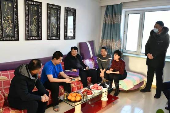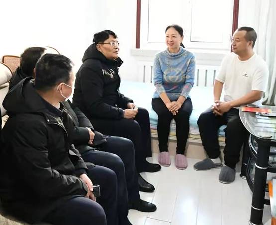 新林林業(yè)局黨委副書(shū)記、局長(zhǎng)張鶴松一行在困難職工劉玉峰家中走訪慰問(wèn)(趙文財(cái) 攝)
