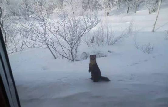 “冰雪畫廊”工作人員介紹,“紫貂只在天氣暖和或者雪不是很大時(shí)才會(huì)出現(xiàn),這幾天天氣回暖,紫貂出現(xiàn)的相對(duì)頻繁一些。雖然投喂了火腿腸,但是它們很警覺,要等人離開很久,才會(huì)靠近食物。”