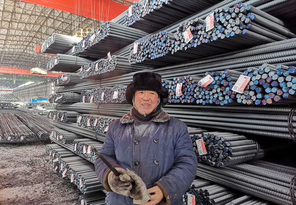 在鋼材成口庫,一位身穿工裝大棉襖、頭戴棉帽,捂得嚴(yán)嚴(yán)實(shí)實(shí),臉色微紅的,帽沿掛滿了霜的工人十分引人注目。他叫朱世軍,是軋鋼廠發(fā)運(yùn)作業(yè)區(qū)丙班的一名普通司索操作員,初一正是白班,主要負(fù)責(zé)鋼材裝運(yùn)掛鉤和為火車車皮用鐵線鎖車門工作,一但發(fā)運(yùn)繁忙時,無論白班還是夜班都得在室外作業(yè)裝車,企業(yè)鋼材就靠他們配合裝上火車發(fā)往市場的。“今天得發(fā)運(yùn)鋼材110車左右,每天上班,在成品庫得上上下下,得走好幾里地,今天就挺冷啊,最低零下26度,冷風(fēng)吹的嘴都木了,既使戴著棉手套,手也都凍僵了,但是,每天一想到通過我的努力,把建龍西鋼鋼材發(fā)往全國各地,為建龍西鋼美好企業(yè)建設(shè)做貢獻(xiàn),我雖然冷點(diǎn)但心里熱乎乎的,真心感到驕傲和自豪。