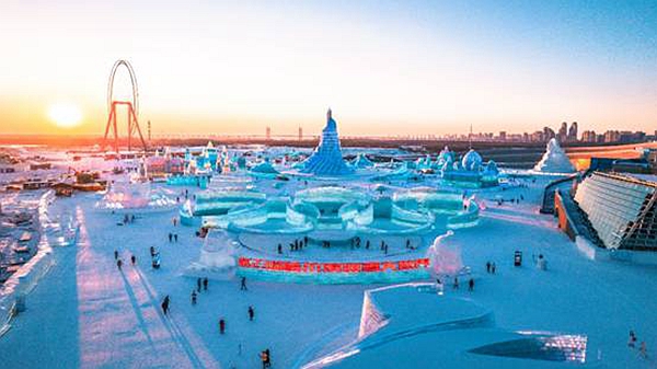 據了解,今年的哈爾濱冰雪大世界以“冬奧之光 閃耀世界”為主題,助力實現“帶動三億人參與冰雪運動”的愿景。冰雪大世界通過打造冰雪童話王國傳遞冬奧精神,園區(qū)內的主體景觀都蘊含著冬奧元素。從入園口到主塔“圣火之巔”的軸線上,北京2022年冬奧會會徽、吉祥物以及奧運五環(huán)等景觀有序排布,游客們不但可以賞冰樂雪,還能夠直觀感受到冬奧魅力。