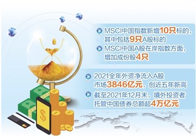 與此同時(shí),境外投資者持有中國(guó)債券規(guī)模也創(chuàng)下歷史新高。數(shù)據(jù)顯示,截至2021年12月末,境外投資者托管中國(guó)債券總額超4萬億元。