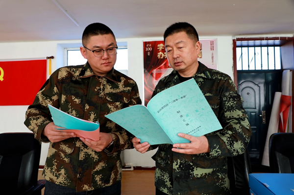 長山林場干部職工正在進一步完善“三清單一承諾”“兩書一函”內業(yè)。(王力 攝)