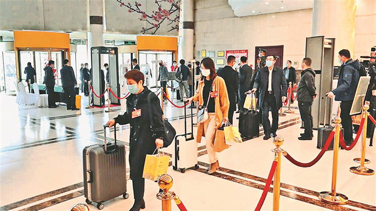 記者在各個(gè)代表團(tuán)駐地了解到,各項(xiàng)工作正在有序進(jìn)行。前來(lái)報(bào)到的代表團(tuán)嚴(yán)格落實(shí)疫情防控要求,提前領(lǐng)取代表出席證和門(mén)卡,代表們自覺(jué)佩戴口罩,執(zhí)行掃碼、測(cè)溫、核酸檢測(cè)等防控措施。報(bào)到入住后,許多代表顧不得休息,第一時(shí)間熟悉會(huì)議議程和相關(guān)安排,準(zhǔn)備自己的討論發(fā)言材料。