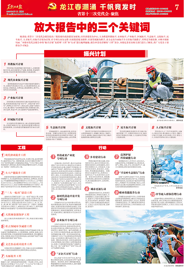 編者按:省第十三次黨代會報告提出:“我們要以政治建設(shè)為統(tǒng)領(lǐng),以經(jīng)濟建設(shè)為中心,大力推進科教振興、農(nóng)業(yè)振興、產(chǎn)業(yè)振興、區(qū)域振興、生態(tài)振興、文化振興、民生振興、人才振興,以振興計劃為引領(lǐng)、以專項行動為支撐、以政策措施為保障、以落實機制為抓手,奮力走出全面振興全方位振興新路子,重塑競爭新優(yōu)勢、不斷開創(chuàng)新局面。”本報對黨代會報告中的“振興計劃”及系列“工程”和“行動”進行梳理摘編,報告中沒有詳解的“工程”部分,本報記者采訪相關(guān)部門進行了解讀,供廣大黨員干部群眾學(xué)習(xí)領(lǐng)會。