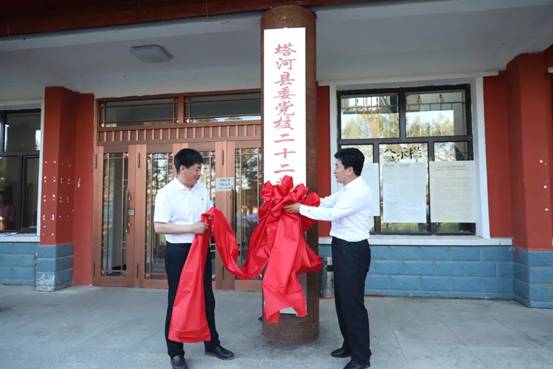 孫亮和許曉光共同為“塔河縣委黨校二十二站林場(chǎng)現(xiàn)場(chǎng)教學(xué)點(diǎn)”揭牌,標(biāo)志著塔河縣黨員干部教育工作邁上新臺(tái)階,也為地企雙方共同開展黨員教育提供新路徑。