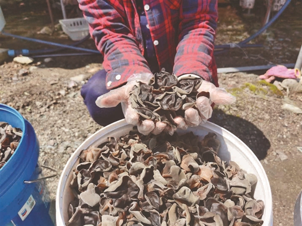 進(jìn)入6月,黑木耳迎來(lái)收獲期。黑龍宮林場(chǎng)的100棟黑木耳大棚內(nèi),鮮嫩光亮的黑色菌朵自由伸展,開(kāi)出層層疊疊的“致富花”。