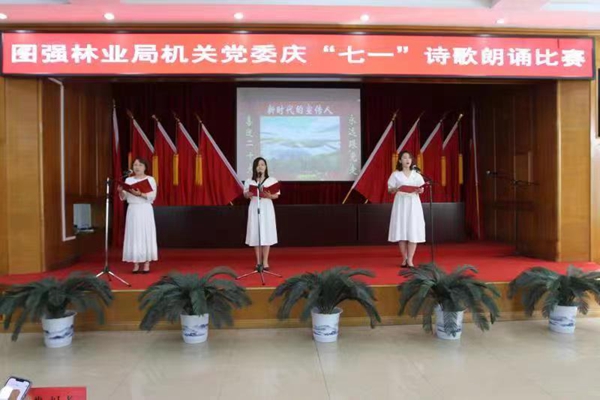 聚焦優(yōu)良作風,堅定理想信念。為全面激發(fā)機關(guān)干部開拓奮進的使命感和責任感,機關(guān)黨委組織黨員干部開展了慶“七一”詩歌朗誦比賽,以此激勵機關(guān)干部發(fā)揚優(yōu)良作風,緬懷黨的豐功偉績,承繼先輩英烈風骨,堅定理想信念、不忘初心,激發(fā)廣大機關(guān)黨員干部愛國、愛黨、愛崗敬業(yè),增強黨性修養(yǎng),推進機關(guān)黨員在新時代實踐中走前列、當先鋒,為加快圖強林業(yè)經(jīng)濟各項事業(yè)高質(zhì)量發(fā)展添磚加瓦。詩歌朗誦大賽上,詩歌作品內(nèi)容健康,積極向上,歌頌家鄉(xiāng),歌頌黨,贊美祖國,參賽選手在詩歌朗誦中精神飽滿、感情真摯、聲情并茂,朗誦富有韻味和表現(xiàn)力,與觀眾產(chǎn)生共鳴,比賽現(xiàn)場氣氛熱烈。