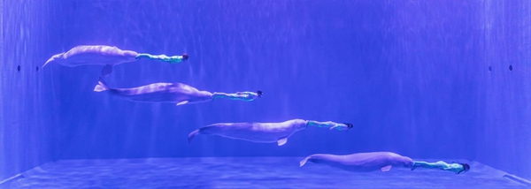 2009年,哈爾濱極地公園首推極地白鯨水下表演,歷時(shí)13年的時(shí)間,“來哈爾濱·看白鯨表演”已經(jīng)成為全國(guó)游客心馳神往的旅游節(jié)目,而表演中經(jīng)典的“海洋之心”不僅獲得了原創(chuàng)版權(quán),也成為了哈爾濱一張具有浪漫色彩的文旅名片,獲得國(guó)內(nèi)、國(guó)際主流媒體持續(xù)十余年的關(guān)注。2021年5月,三只可愛的極地白鯨創(chuàng)造的“三鯨開泰”首次亮相;現(xiàn)在,哈爾濱極地公園的白鯨家族推出“四鯨巡游”、“四鯨祈?!钡雀唠y度表演,再一次創(chuàng)造了經(jīng)典。