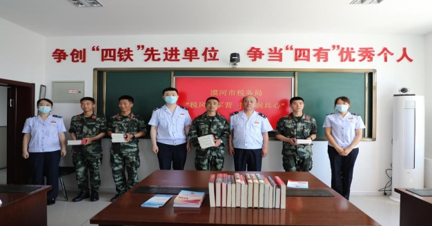 活動中,稅務(wù)干部為軍營官兵進行了軍人相關(guān)稅收政策專題輔導(dǎo),為他們送上“退役軍人創(chuàng)業(yè)稅費扣減”“隨軍家屬創(chuàng)業(yè)免征增值稅政策指南”“企業(yè)吸納退伍士兵就業(yè)稅費扣減”“自主擇業(yè)的軍隊轉(zhuǎn)業(yè)干部免征個人所得稅”等政策大餐。專題輔導(dǎo)設(shè)置政策解讀、現(xiàn)場互動、釋疑解問等諸多環(huán)節(jié),從明晰優(yōu)惠政策條件、納稅申報方式等不同角度,用通俗易懂的語言和生動幽默的例子深入宣傳解讀相關(guān)稅收優(yōu)惠政策,打消官兵復(fù)退擇業(yè)的后顧之憂,幫助他們吃了一顆“定心丸”。專題輔導(dǎo)結(jié)束后,稅務(wù)干部向部隊官兵贈送30余本書籍,并送上現(xiàn)行個稅費種簡介、退役軍人就業(yè)創(chuàng)業(yè)稅費優(yōu)惠政策指引等宣傳冊,給綠色軍營送去藍色溫暖。
