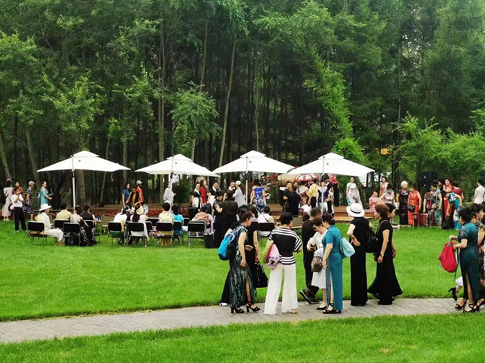 在文化創(chuàng)意園的核心位置,有一處面積為131.14平方米的半月狀森林舞臺(tái)。4000株大海棠花從2米高的創(chuàng)意作品啤酒筒潑灑而出,蜿蜒“流淌”。此景名為《森林飛花》,與森林舞臺(tái)交相呼應(yīng),相得益彰。