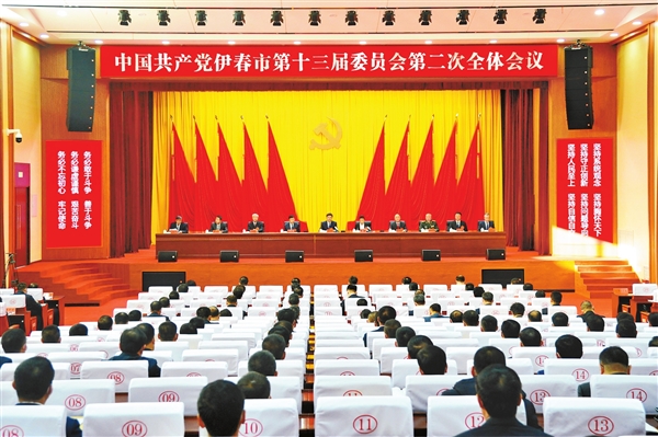 中國(guó)共產(chǎn)黨伊春市第十三屆委員會(huì)第二次全體會(huì)議會(huì)場(chǎng)。(胡錫韋 劉博/攝)