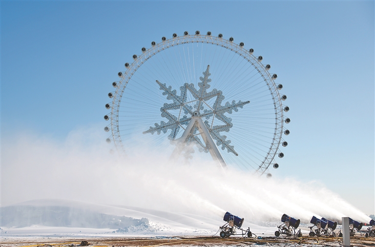 人工造雪機(jī)齊噴射。本報(bào)記者 郭俊峰攝