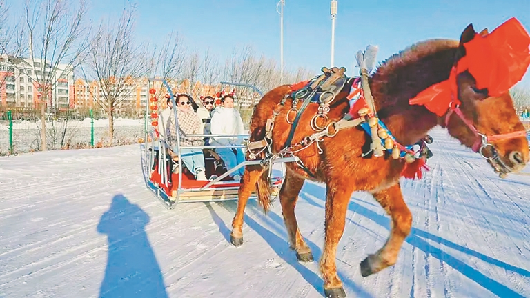 四新關東雪村打卡亮點:越野車拉雪圈。設置了雪地摩托、越野車拉雪圈、雪地轉轉、雪地碰碰球等冰雪游樂項目。
