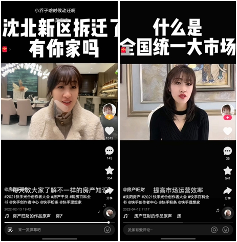 “現(xiàn)在整個沈陽房產(chǎn)市場30%的成交額都是由快手主播提供的,當(dāng)?shù)氐拈_發(fā)商們也會經(jīng)常和快手平臺、快手主播合作宣傳,平臺對于房產(chǎn)行業(yè)的約束,也帶著當(dāng)?shù)胤慨a(chǎn)市場向更加正規(guī)化方向發(fā)展”。