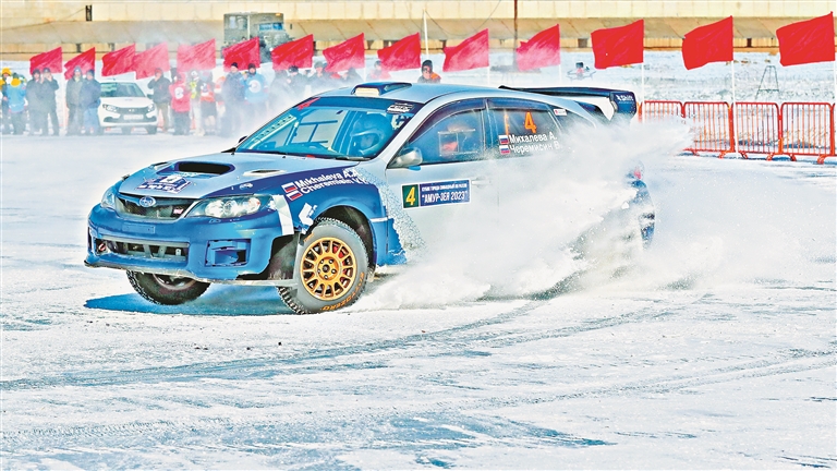本次比賽地點設(shè)在中俄界江黑龍江江面上。比賽設(shè)置大排量和小排量兩個組別,進行資格賽和決賽的比拼,雙方各派出20輛汽車參賽。比賽采用電子計時和機械計時兩種方式,參賽選手分別在周長1.5公里的A型場地和3.8公里的B型場地上駕車行駛,兩次用時之和為最終比賽成績,用時最短者勝出。現(xiàn)場500多名中俄觀眾共賞這場冰雪汽車挑戰(zhàn)盛宴。