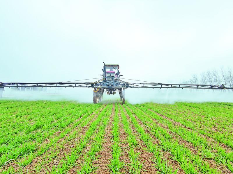 小麥返青,植保作業(yè)正當(dāng)時。在亳州市譙城區(qū)聶紅偉合作社的麥田旁,工作人員正在調(diào)試自走式打藥機(jī),準(zhǔn)備噴施除草劑?!斑@個‘大塊頭’一次可以裝2000斤的藥液,一天可以打上1000畝地?!焙献魃缲?fù)責(zé)人聶紅偉告訴記者,通過發(fā)展訂單農(nóng)業(yè),合作社帶動周邊農(nóng)戶種植小麥4萬畝。合作社現(xiàn)有各式農(nóng)機(jī)60余臺,可以為農(nóng)戶提供耕種收等全程機(jī)械化服務(wù),農(nóng)戶每畝地產(chǎn)量可提升50斤至80斤,通過農(nóng)資農(nóng)服降本增效,農(nóng)戶畝均效益提高三四百元。