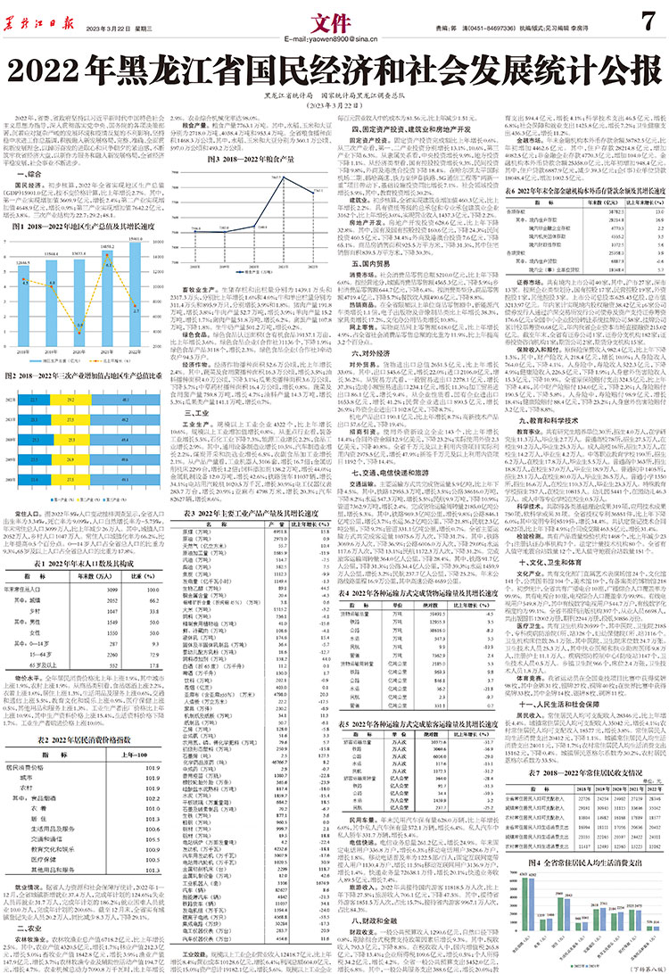 黑龍江省統(tǒng)計局 國家統(tǒng)計局黑龍江調(diào)查總隊 (2023年3月22日)
