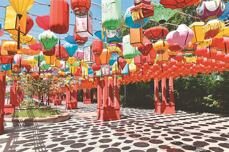 本次活動為期5天,還設有眾多特色主題展示:上千把倒懸油紙傘、1800盞紅燈籠、700余個彩燈、12盞宮燈、7座仿古涼亭……為大家?guī)硪粓鲆曈X盛宴。