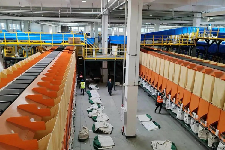航空郵件處理中心進口場地(一階段)采用“矩陣+小件分揀機”設(shè)備工藝,配置11條粗分線和10條細分線,配置432格口的三層小件分揀機1臺,設(shè)置直發(fā)車位105個。場地整體處理效率設(shè)計為10.5萬件/小時,日郵件吞吐能力可達210萬件。航空郵件處理中心全面建成后,垛口數(shù)量較原陸運處理中心增加2.2倍,日均處理能力可提高2.15倍,單件成本可下降30%。航空郵件處理中心建成運營后,全省郵政寄遞業(yè)務(wù)運營能力和郵件全程時限質(zhì)量將邁上一個新臺階,核心競爭力將大幅提高,為臨空經(jīng)濟區(qū)高質(zhì)量發(fā)展增添動力。